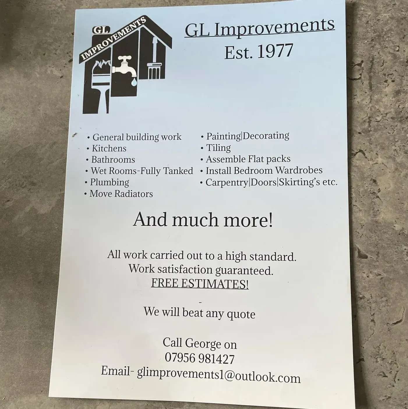 Hi, my name is George, I've been working in the building industry since 1977. If you're looking for honesty, quality work, a fair price and piece of mind then give me a call.